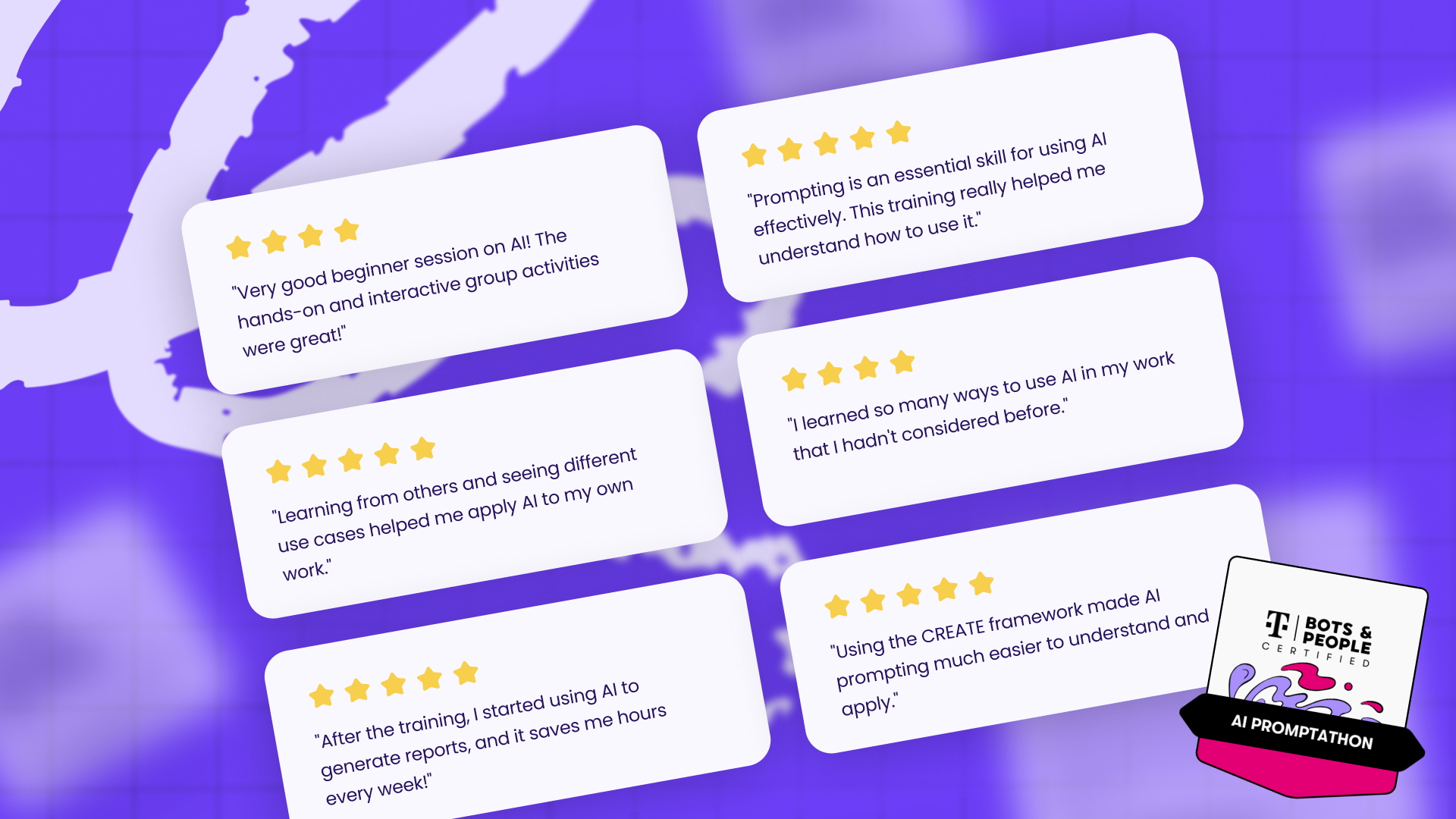 Bots & People’s approach enabled Deutsche Telekom to scale AI skills through Promptathons and function specific workshops, allowing teams to learn collaboratively and apply AI directly to real work scenarios.